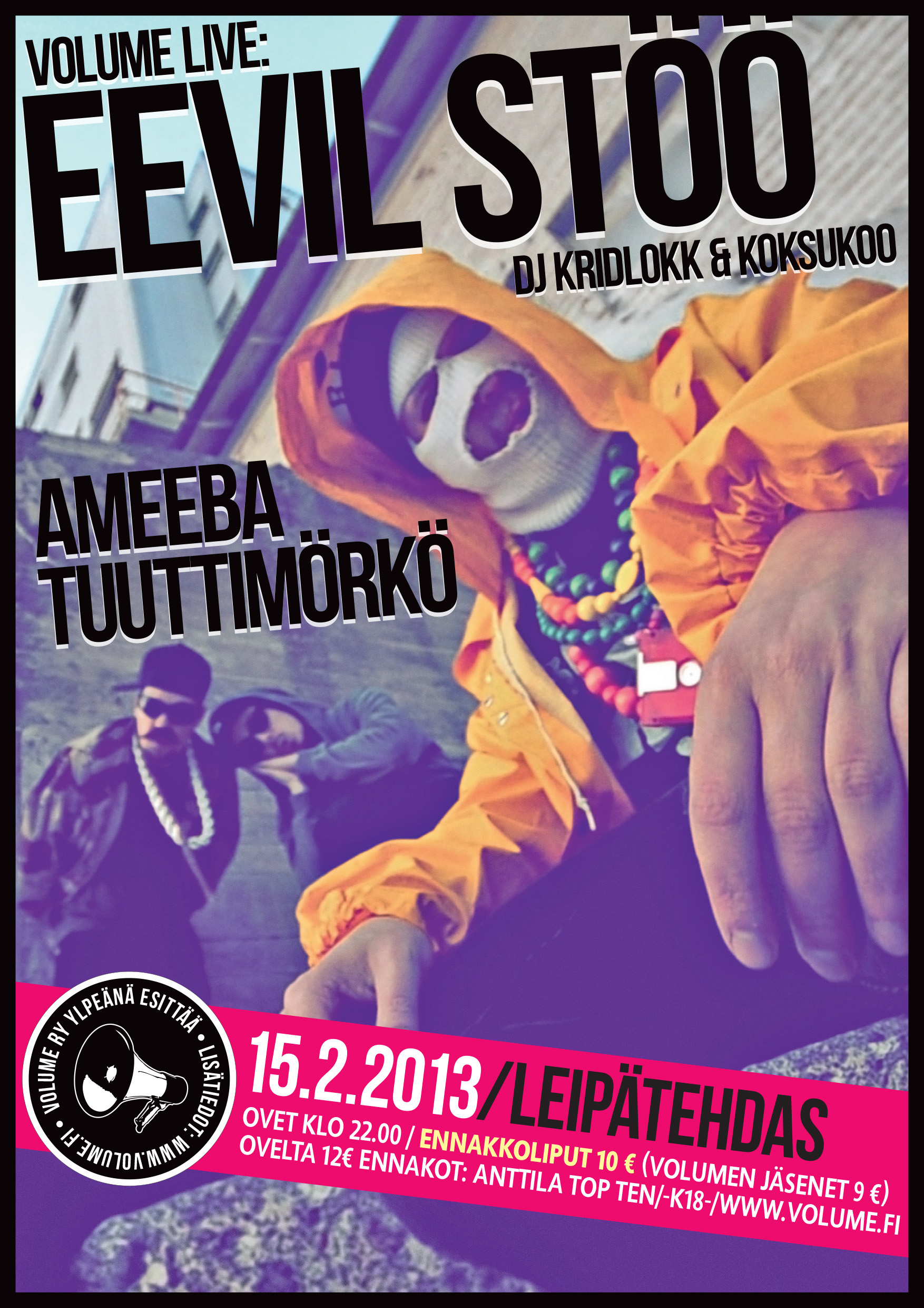 Volume Live: Eevil Stöö, DJ Kridlokk & Koksukoo + Ameeba + Tuuttimörkö
